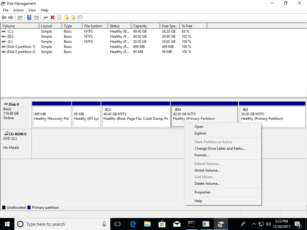 Como he dicho anteriormente, si no hay espacio adyacente no asignado en el lado derecho, no se puede extender el volumen en Windows 10, cuando haga clic con el botón derecho, El volumen extendido está atenuado.